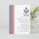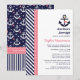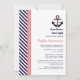 Rosa und marineblau Anker Braun Dusche Einladungen mit einem Wasserthema. Navy und weiße Streifen mit einem bedruckten rosa und weiß gehefteten Band Design und ein Anker mit einem Stern und rosa Herz hängt von einem Seil. Dieses niedliche und edle Design eignet sich ideal für einen Ozean- oder Strandurlaub im Frühjahr oder Sommer. Passen Sie die Vorder- und Rückseite dieser Karte an, um zu sagen, was Sie gewollt haben. Kunstwerk © Chrissy H. Studios, LLC.Alle Rechte vorbehalten.