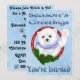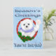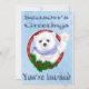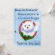Die Grüße der Saison Polar Bear Weihnachten Einladungen Front mit einem hellblauen Hintergrund mit weißen Schneeflocken, ein Happy Polar Bär mit einem blauen Schal mit einem Pinguin auf seinen Schultern trägt eine Weihnachtsmannmütze. Stilvoll rot gestreifter Text ist Happy Holidays, Sie sind eingeladen! Zurück ist ein hellblauer Hintergrund mit Schneeflocken. Auf der Rückseite ist Set, um Ihre Party-Details hinzuzufügen. Wir haben auch Matching; Briefmarke, Adressetiketten, Tortenpfropfen und Gastgeschenken mit Süßigkeiten!