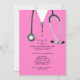 Kreative Doktoranden-Graduiertenparty mit rosafarbenen Klinikscheuchen und Stethoskop. Editieren Sie den Text, um eine einmalige Ankündigung der Party Einladung oder des Doktorgrades zu erstellen.