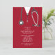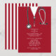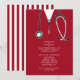 Die Creative Medical School Graduation Party lädt mit roten Krankenhauskeuchen und Stethoskop ein. Bearbeiten Sie den Text, um eine einzigartige Party Einladung des Arztes zu erstellen.