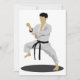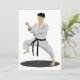 Strike eine phantastische Karate-Pose wie diese hier. Diese Person ist dort Karate Outfit und sie sind in einer Karate-Pose. Diese Karate-Person trägt einen schwarzen Gürtel. Dieses Karate-Pose-Design sieht gut aus auf diesen Einladungen