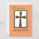 Eine schöne Einladungskarte mit einem metallischen Kreuz auf weißem, grünem und rosa Hintergrund. Feiern Sie eine Ordination und senden Sie Segnungen an einem ganz besonderen Tag. Eine Christliche Glaubenskarte und eine große Veränderung.