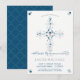 Diese 4,5" x 6,25" Einladungskarte der Ersten Heiligen Kommunion enthält einen grauen Kalice und Wafer (heilige Kommunion), umgeben von einem verzierten Kreuz und den Worten "Erste Kommunion", die in einem eleganten Schriftart geschrieben sind. Ideal für den besonderen religiösen Anlass Ihres Jungen, kann es nach Ihren Wünschen mit dem Namen und den Veranstaltungsinformationen Ihres Kindes angepasst werden.