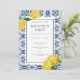 Personalisieren Sie diese Amalfi Coast Mediterrane Zitronen Fliesen Empfang Einladungskarte mit Ihren eigenen Worten einfach und schnell, einfach drücken Sie die Schaltfläche Anpassen, um den Stil und die Platzierung des Textes weiter zu ordnen und zu formatieren.