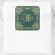 Einmalige Hochzeitsmonogramm Gold Frame Dunkelgrün Quadratischer Aufkleber