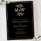 Einfache Hochzeitspaar Monogramm-Initialen mit botanischen Linien-Kunstblattdetails in Gold, Silber oder Rose-Goldfolie auf schwarzem Hintergrund für eine wunderschöne und einzigartige, moderne, minimalistische Hochzeitseinladung. Ändern Sie den Text, um ihn zu personalisieren.