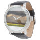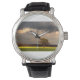 Uhr, Vintage Männeruhr mit schwarzem Lederarmband