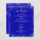Ein modernes, elegantes Hochzeitsprogramm/Details/Zeitleiste. Ein königsblauer Hintergrund mit Imitaten und Glitzern aus silberfarbenem Glitzer. Personalisieren und fügen Sie Ihre Namen und Hochzeitsdetails. Weiße Buchstaben. Text auf beiden Seiten. Fügen Sie Ihre Hochzeitswebsite url zum QR-Code hinzu. 1 Blatt = 1 Programm, mit der Kante bis Kante bedruckt.