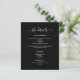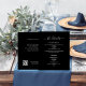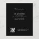 Eine moderne, elegante Hochzeitsdetails/Programm/Zeitleiste. Ein schwarzer Hintergrund. Personalisieren und fügen Sie Ihre Namen und Hochzeitsdetails. Weiße Buchstaben. Text auf beiden Seiten. Fügen Sie Ihre Hochzeitswebsite url zum QR-Code hinzu. 1 Blatt = 1 Programm, mit der Kante bis Kante bedruckt.