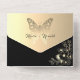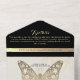 Eine außergewöhnlich einzigartige, luxuriöse Schwarz-Weiß-Hochzeitseinladung, die mit einem romantischen Goldschmetterling aus den Imitaten verziert ist und die spirituelle Wiedergeburt, Hoffnung und Leben symbolisiert. Dieses elegante Design strahlt Charme und Bedeutung aus. Personalisieren Sie Ihre Hochzeitsdetails und UAWG für eine wirklich besondere Touch.