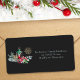 Vervollständigen Sie Ihre Urlaubssendungen mit diesem eleganten Retourenlabel mit einer Vintagen, wasserfarbenen Laterne, umgeben von Kiefernästen, roten, heiligen Beeren und einer sanften Goldschneeflocke, das alles Set vor schwarzem Hintergrund mit fallendem Schnee. Das Layout verbindet minimalistischen Wintercharakter außerhalb des Fotos fröhlichen Weihnachtszauber mit skandinavischen Weihnachtsmustern. Ideal für die Paarung mit passenden Karten, Umschlägen oder Geschenketiketten. Passen Sie den Namen und die Adresse an, um eine geschliffene Saisonsuite zu erstellen.