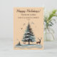Gute Ferien! Herzliche Wünsche, Weihnachts-/Feiertagskarte. Diese Karte zeigt eine moderne Aufnahme auf einem dekorierten Baum, im Wald, mit Hirschen in der Nähe und Vögel in Flug, alles Set vor einem Hintergrund von einem mittleren pfirsichfarben. Wasserfarben. Auf der Kartenrückseite befinden sich auch schwache Schneeflocken, die blass genug sind, um auf Wunsch handgeschriebene Noten zu erhalten. Gruß: "Happy Holidays! Herzliche Wünsche" (Individualisieren und bearbeiten, wie gewünscht) Unsere Weihnachtskarten erfassen das Wesen der Urlaubssaison mit einzigartigen Designs mit Kränzen, traditionellen und modernen Weihnachtsbäumen und friedlichen Tauben. Jede Karte ist mit einem schönen Weihnachtsdekor geschmückt und schafft eine festliche und herzliche Atmosphäre. Diese Karten sind perfekt, um den Liebsten herzliche Wünsche zu senden, und werden Ihnen Freude und Feiertagsstimmung bringen. Unsere Karten sind in verschiedenen Größen erhältlich und können personalisiert sein. Hinweis/Haftungsausschluss: Zusätzlich zur Standardsoftware kann dieses Design mithilfe von GenerativeContent erstellt worden sein. Bitte beachten Sie, dass GenerativeContent ein Werkzeug ist, das zur Unterstützung des kreativen Prozesses verwendet wird und die menschliche Kunst nicht ersetzt.