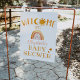 niedliche Aquarellfarbe Begrüßung Mond, Sonne, Regenbogen und Sterne Babydusche Begrüßungsschild. Personalisierbar