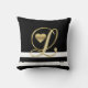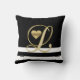 Modernes und modisches Wurfskissen in den Schwarzweiss-Farben. Topographiemonogrammbuchstabe "L" im Gold mit Goldherzen. Vervollkommnen Sie für Schlafzimmer, Wohnzimmer und sogar im Freien auf Patio. Macht reizendes Geschenk! Treten Sie mit Designer für andere Buchstaben/Hintergrundfarben in Verbindung.