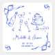 Einzigartiges Quirky Hand Drawn Blue French Bow Fo Quadratischer Aufkleber