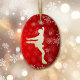 Dieser elegante Weihnachtsschmuck besticht durch einen weiblichen Eis-Skater in goldener Silhouette vor einem Schneeflocken. Das Bild und die Schneeflocken sind auf einem hellroten Hintergrund platziert. Die Rückseite des Ornaments hat den gleichen roten Hintergrund mit goldenen Schneeflocken und Textfeldern, die Sie anpassen können. Ideal für den Eis-Skater- oder Eis-Skaten-Fan, und macht auch für ein Kind von Eltern oder Großeltern einen großen Vorzug.