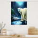 Ein Eisbär, der in einer Wasserpfütze in einer kleinen Oase stehend ist. Das ist eine künstlerische KI.