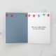 Ein Eisbär und ein Pinguin schweben fröhlich einen schneebedeckten Hügel hinunter, gebündelt in gemütlichen Schals und Ohrmuffs. Inside text ist bearbeitbar.