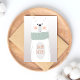 NewParkLane - Niedliche Weihnachtspostkarte, mit Eisbär und Zitat: 'Warme Wünsche' in moderner, handgeschriebener Typografie, vor einem warmen grauen Hintergrund. In diesem Shop stehen passende Karten, Briefmarke und andere Produkte zur Verfügung.