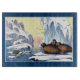 Eine wunderschöne und farbenfrohe Gravur, um 1860, von Polarbären, Walrus und Siegeln auf arktischem Eis, mit der Sonne tief am Horizont im Hintergrund.