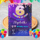 Niedliche und farbenfrohe sechs Haufen Spaß Geburtstagsfeier Einladung für Mädchen. Die lila und rosafarbene Creme Nr. 6 mit vielen Sprinklen ist sehr lebendig.
