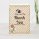 Danken Sie mit einem süßen Eiscremethema kardieren. Illustriert mit einem SchokoladenEiscreme-Bar, 3 schaufeln Sie Eiscremebecher mit einer Kirsche auf die Oberseite und ein Erdbeerfloss. Kleine Erdbeeren und Kirschen neben ihnen. Bunter Confetti umgibt die Karte mit einem diagonalen gestreiften Hintergrund in einer hellbraunen Farbe. Personalisierte Mitteilung nach innen. Text auf der Front sagt: Danke für Sein so süß.