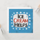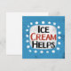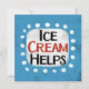 "Ice Cream Helps" ist ein lustiges Textdesign mit weißer Akzent-Form, umgeben von weißen, weißlichen, weißlichen, weißgestrichenen Punkten.