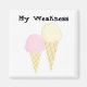 Ein cooler Eiscremesmagnet. Zwei Eistöcken in Vanille und Erdbeere. Cooles Sprichwort "meine Schwäche"...