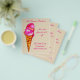 Ein Flyer, der für eine Eisdiele, eine große Öffnung oder einen Eisdielen geeignet ist, der eine niedliche und farbenfrohe originelle Abbildung eines rosa Eis mit Waffelkegel des Künstlers Sacha Grossel mit individualisierbarem Text enthält. Die Hintergrundfarbe ist anpassbar.