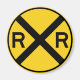 Internationale Art Straße und Autobahnwarnschild beraten von der Eisenbahn.
