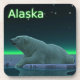 Ein friedlicher Moment in der langen arktischen Nacht. Ein Polarbär Erholungen am Rand eines offenen Bereichs im Packeis. Die Nordlichter leuchten in der Ferne; helle Sterne leuchten über dem Kopf. Der Text "Alaska" erscheint in grün und weiß. Eisbären sind gefährdet. Wie lange werden solche Szenen noch stattfinden können? Helfen Sie bitte, Polarbären vom Aussterben retten.