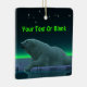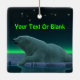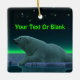 Ein friedlicher Moment in der langen arktischen Nacht. Ein Eisbär Erholungen am Rand eines offenen Bereichs im Packeis. Die Nordlichter leuchten in der Ferne; helle Sterne blinken über dem Kopf. Fügen Sie Ihren eigenen Text hinzu. Eisbären sind gefährdet. Wie lange werden solche Szenen noch stattfinden können? Helfen Sie bitte, Polarbären vom Aussterben retten.
