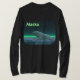 Ein friedlicher Moment in der langen arktischen Nacht. Ein Eisbär Erholungen am Rand eines offenen Bereichs im Packeis. Die Nordlichter leuchten in der Ferne; helle Sterne blinken über dem Kopf. Der Text "Alaska" erscheint in grün und weiß. Eisbären sind gefährdet. Wie lange werden solche Szenen noch stattfinden können? Helfen Sie bitte, Polarbären vom Aussterben retten.