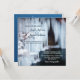 Dieser Eisvorhang ähnelt einem Hochzeitsschleier mit seiner strahlenden Eleganz und eignet sich perfekt für eine Winterhochzeit. Kleine Schneeflocken und zwei Kerzen runden das Design ab. Diese Einladung enthält auch eine passende RSVP-Karte.