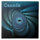 Ein blaues Fraktal-Bild, das einer wirbelnden Gruppe von Walen unter Polareis ähnelt; vielleicht Beluga- oder Minkwale, die die Pole häufen. Text mit "Kanada" erscheint in blau-weiß.