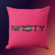 Füge deinem Raum eine **gewisse Attitüde** hinzu mit diesem NASTY-Kissen mit Statement-Charakter. Mit sauberer, moderner Typografie und einem auffälligen Durchstreich-Detail verwandelt dieses Design alltägliche Dekoration in furchtlose Selbstverwirklichung.