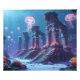 Esta ilustración digital captura el misterio de una ciudad sumergida, revelando un paisaje de ruinas antiguas bajo el agua. La pieza se centra en la belleza de la arquitectura perdida y el silencio oceánico, creando una atmósfera de misterio y fantasía marina. El diseño utiliza tonos profundos y efectos luminosos que resaltan la vida que ahora habita las estructuras. Es una obra de arte de fantasía perfecta para decoración del hogar, para quienes aprecian los mundos ocultos y la arqueología fantástica.