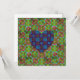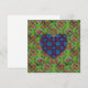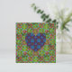 Ein lebendiges und kompliziertes Muster vervollständigt den Raum mit einem zentralen blauen Herz, umgeben von symmetrischen Blumenmotiven in Grün, Rosa und Braun. Der Hintergrund ist einheitlich grau und betont den bunten Wandteppich.