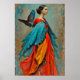 "Elaris" - Federn des Werden. Diese mächtige Figur ist im Absturz des Wandels gefangen und trägt Transformation wie Rüstung. Die lebhaften Rot- und Blautöne und die fließenden Texturen sprechen von Befreiung durch Evolution. Jede Falte und jede Flatterblende offenbart ihren Weg von der Form zur Freiheit, Stärke zur Weichheit, Frau zum Flügel.