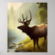 Majestic Elk trinkt an einem Waldstrom - ein digitales Gemälde, das mit KI-Software erstellt wurde.