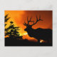 Ein Elch steht auf einem Hügel, während ein Laubbrand hinter ihm wütet. Seine Silhouette sticht scharf gegen das Feuer im Hintergrund hervor. Computerkunst von Kathie Miller.