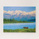 Wonder Lake, Elchbulle ernährt sich von Vegetation, Alaskagebirge in der Ferne, Denali-Nationalpark, Alaska
