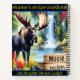 Ein großer Elch liegt in der Nähe eines ruhigen Wasserfalls, umgeben von einem pulsierenden Herbstwald, der das Wesen der Wildnis und der natürlichen Schönheit verkörpert. HINWEIS zum Ändern von Text- oder Grenzfarben mithilfe des Entwurfstools Bearbeiten