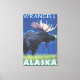 Elche bei Nacht - Wrangell, Alaska - Vintage Travel Poster wurde 2007 gegründet. Dieses Bild zeigt Szenen aus Wrangell, AK.
