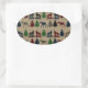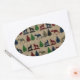 Elche Wolf Pine Tree Rustikaler Burlap Print Outdo Ovaler Aufkleber