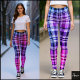 Electric Blue Pink Plaid Gradient Design Leggings