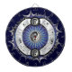 Der elektrisch blaue Yin Yang mit Sternexplosion in der Mitte wird von chinesischem Text auf einem silbernen Hintergrund flankiert. Text übersetzt in ein vollständiges Begegnen der Köpfe zwischen zwei Menschen.