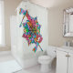 Ein buntes, abstraktes Blumendesign und eine Libelle sorgen für ein angenehmes Bad.