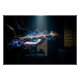 The essence of musical creation with this vibrant image capturing a musician in full creative flow. Blue sound waves dance around the bass strings, transforming sound into visual art. The professional studio environment and focused lighting create an intimate and powerful atmosphere, perfect for music projects, album covers, or social media content seeking to convey passion and professionalism.