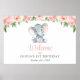 Elefant, rosa Blume, Begrüßung zum ersten Geburtst Poster